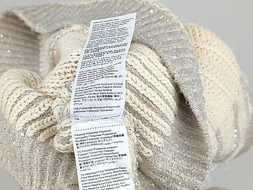 - Wzór: szerokie, poziome pasy; różne sploty dzianiny dla efektu 3D
