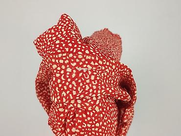 - Wzór: czerwone tło w nieregularne, jasne kropki (motyw drobnej panterki)