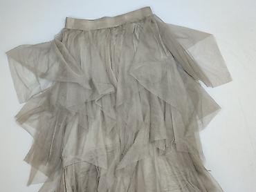 Spódnica damska z tiulu, midi, srebrzysto‑szara - Krój: rozkloszowana, wielowarstwowa - Długość: midi - Materiał: lekki, miękki tiul + gładka podszewka - Talia: szeroki, gładki pas - Wykończenie: ...
