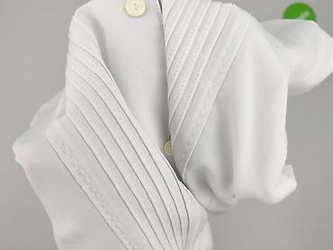 Biała damska bluzka z lekkiej, półprzezroczystej tkaniny (styl szyfonowy). - Fason: luźny, prosty krój typu boxy, bez klasycznych rękawów (opadające ramiona). - Dekolt: okrągły. - Zapięcie: z...