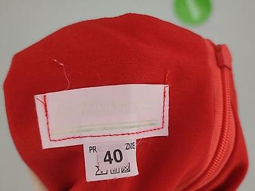 Sukienka damska – intensywna czerwień, rozmiar 50 - Fason: prosta, lekko trapezowa, długość do kolan. - Rękawy: 3/4 z szerokim mankietem; na lewym rękawie ozdobne rozcięcie z troczkiem do zawiązan...