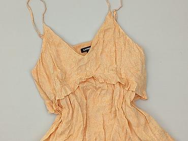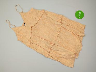 Sukienka damska na ramiączkach z falbankami - Rozmiar: M (na metce) - Materiał: 100% poliester - Wzór: drobne kwiaty w odcieniach niebieskiego, bieli i żółtego na brzoskwiniowym tle - Krój: lekko r...