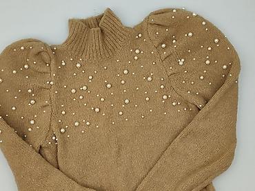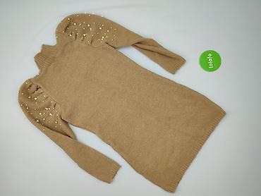 Dzianinowa sukienka damska, rozmiar 36. - Fason: tunikowy, lekko odcinany pod biustem - Dekolt: głęboki, zaokrąglony - Rękaw: krótki - Kolor: ciemny brąz/melanż - Detale: dwie naszywane kieszenie z...