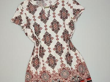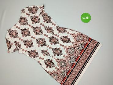 Sukienka damska F&F - Krój: tunikowy, lekko odcinana pod biustem, z marszczeniami - Dekolt: okrągły - Rękawki: krótkie, z delikatnym ściągnięciem po bokach - Wzór: wyrazisty, kwiatowy, w odcieniac...Stan: