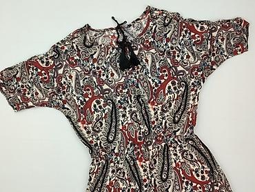 Sukienka damska F&F, rozmiar EU 34 (UK 6, US 2) - Krój: dopasowana, mini - Rękaw: krótki - Dekolt: okrągły z ozdobnym wycięciem i klamerką z przodu - Wzór: etniczny/paisley z motywami kwiatów i mo...