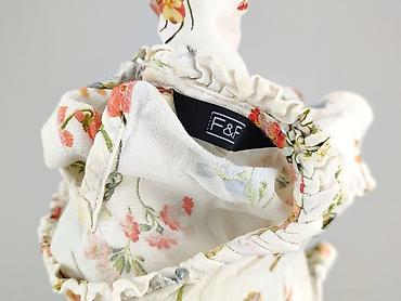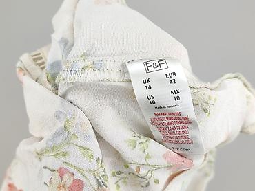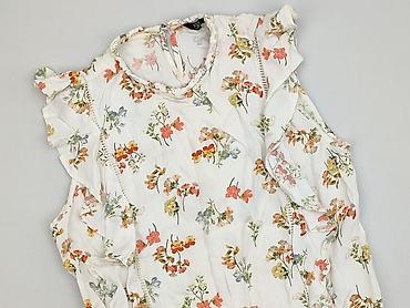 Bluzka damska F&F - Rozmiar: EUR 40 (UK 12, US 8) - Materiał: 100% wiskoza – przewiewna, miękka, przyjemna dla skóry - Wzór: biała w delikatny, wielobarwny motyw kwiatowy - Krój: bez rękawów, z fa...