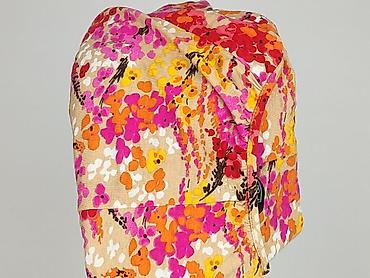 - Wzór: intensywny, kwiatowy print w odcieniach różu, czerwieni, pomarańczu, żółci i bieli na beżowym tle.
