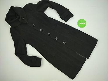 Płaszcz damski F&F, rozmiar EU 36 (UK 8, US 4). Elegancki model o militarnym charakterze. - Kolor: czarny/grafitowy - Krój: dopasowana góra, lekko rozszerzany dół - Dwurzędowe zapięcie z ozdobnymi...