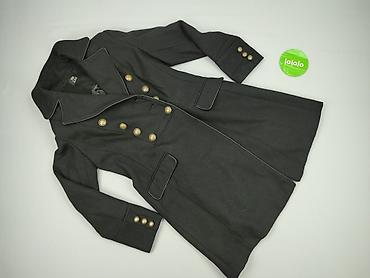 Płaszcz damski H&M, rozmiar EU 34 (US 4, CA 4, CN 165/84A). Kolor: ciemnoszary/melanż. Opis: - Dwurzędowy fason inspirowany militarnym stylem, z dużym kołnierzem. - Dekoracyjne metalowe guziki...