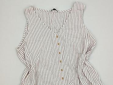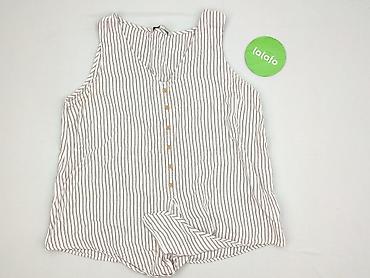 Top damski F&F w paski - Model: luźny top bez rękawów z zabudowaną górą - Wzór: cienkie pionowe paski granatowo‑białe - Dekolt: okrągły - Krój: rozszerzany ku dołowi, swobodnie opływający sylwetkę...Rozmiar: