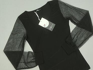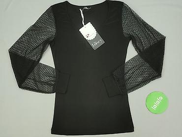 Bluzka damska z siateczkowymi wstawkami - Kolor: czarny - Rozmiar z metki: M - Krój: dopasowany, długość do bioder - Rękawy: długie, wykonane z przezroczystej siateczki - Dekolt: okrągły z trójkąt...
