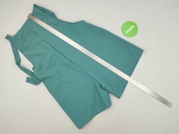 - Krój typu pinafore z szerokimi szelkami krzyżującymi się na plecach – bez wiązania w pasie, łatwe zakładanie przez głowę.