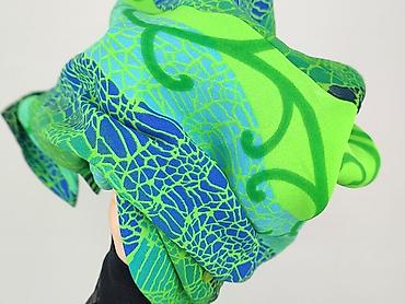 - Kolorystyka i wzór: intensywne odcienie zieleni i niebieskiego; graficzny, mozaikowy print z roślinnymi zawijasami; tył z dominującym roślinnym motywem