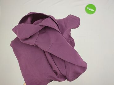 Fioletowa bluzka damska z charakterystycznym marszczonym kołnierzem i zapięciem na trzy guziki. Jej luźny krój z rękawami o długości 3/4 zapewnia komfort noszenia i swobodę ruchów, idealnie sprawdz...