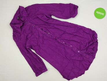 Bluzka/tunika damska w kolorze liliowym (lawendowym). - Fason oversize z krótkim, szerokim rękawem - Okrągły dekolt z listwą i rzędem dekoracyjnych guzików z przodu - Dodatkowe guziki na ramionach...