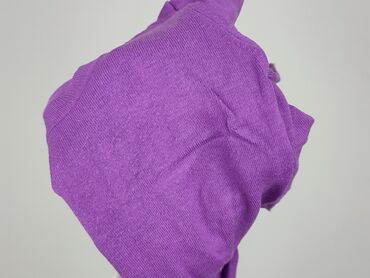 Fioletowy sweter damski o luźnym kroju, wykonany z ażurowej dzianiny, idealny na cieplejsze dni. Model posiada okrągły dekolt i długie, szerokie rękawy zakończone ściągaczami, co zapewnia komfort n...