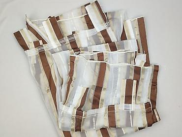 - Przejrzysta firanka z pionowymi pasami w odcieniach brązu, beżu, bieli i szarości