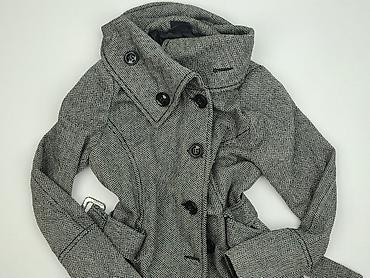 Szary płaszcz damski z kapturem, rozmiar 36 - Fason: przedłużany, lekko taliowany, z modelującymi przeszyciami z przodu i z tyłu - Zapięcie: długi, metalowy zamek błyskawiczny z ozdobnym suwakiem ...