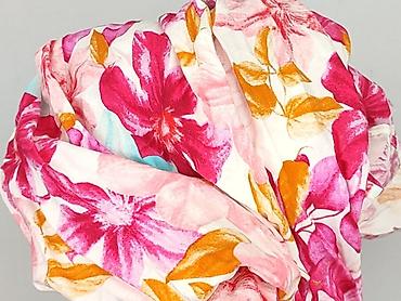 - Wzór/kolor: intensywny, tropikalny print w duże kwiaty; odcienie różu, fuksji, pomarańczu i turkusu na jasnym tle.