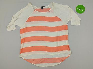 - Wzór i kolor: szerokie poziome pasy w odcieniach łososiowym/koralowym i ecru; rękawy i karczek w kolorze ecru.