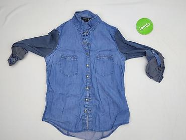 Damska koszula jeansowa - Rozmiar: S (metka widoczna na zdjęciu) - Fason: dopasowany, z modelującymi przeszyciami - Zapięcie: napy/drukowane zatrzaski w perłowym kolorze (przód i mankiety) - Kolor...