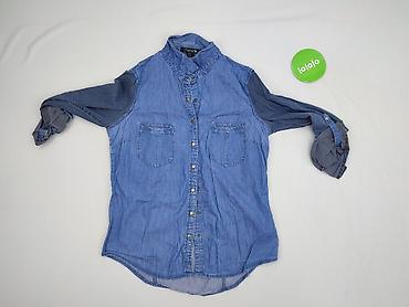 Koszula damska denimowa, rozmiar 36 - Fason: koszula jeansowa ze sztywnym kołnierzykiem - Zapięcie: napy w kolorze srebrnym na całej długości oraz przy mankietach - Kieszenie: dwie naszywane kiesz...