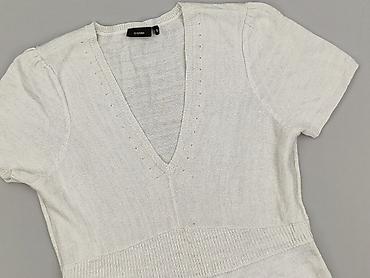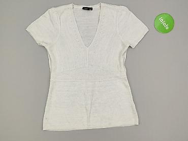 - Fason: dzianinowa bluzka z krótkim rękawem, lekko dopasowana, z szerokim, elastycznym pasem pod biustem podkreślającym talię