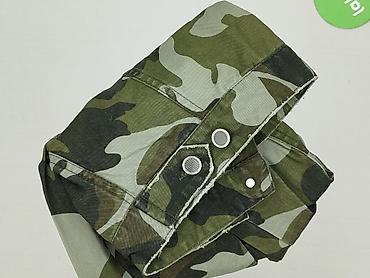 Kurtka damska Fresh Made, rozmiar S, w wojskowy wzór moro. Krótki, dopasowany fason typu crop z kołnierzykiem i pagonami na ramionach. Zapinana na metalowe napy z przodu, mankiety również na napy. Z przodu dwie kieszenie piersiowe z klapami. Regulacja obwodu dołu na napy z tyłu. Materiał: 100% bawełna (metka ze składem widoczna na zdjęciu). Przyjemna, średniej grubości tkanina denimowa/keprowa, idealna na sezon przejściowy. Konserwacja wg metki: pranie w 30°C, nie suszyć w suszarce, prasować w niskiej temp., nie chlorować. Styl militarny, świetnie łączy się z jeansami i sukienkami.