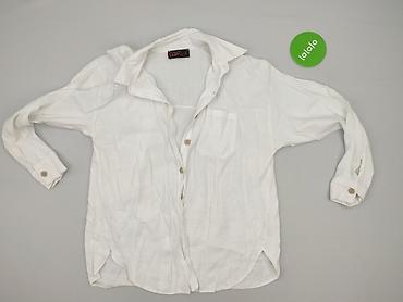 Biała koszula damska z długim rękawem - Krój: klasyczna koszula zapinana na guziki, kołnierzyk, mankiety na guziki, delikatnie zaokrąglony dół. - Rozmiar z metki: XL. - Skład materiału: 95% polies...
