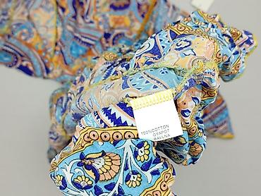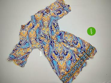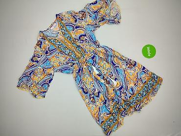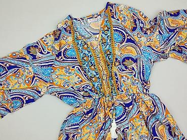 - Wzór/kolor: bogaty orientalny/boho paisley w odcieniach kobaltu, turkusu, żółci i pomarańczy; dekoracyjne lamowania przy dekolcie i na dole