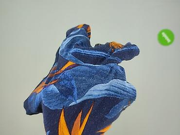 - Wzór: tropikalny nadruk w odcieniach granatu i pomarańczu (motyw ptaków raju/large liście)