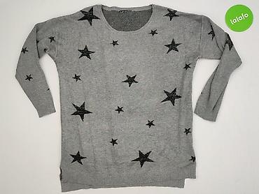 Szary ażurowy sweter damski Gina, rozmiar 38. - Krój: luźny, z krótką nietoperzową rękawką i szerokim ściągaczem u dołu (ładnie podkreśla talię). - Wzór: wplecione gwiazdy na całej powierzchni, le...Stan: