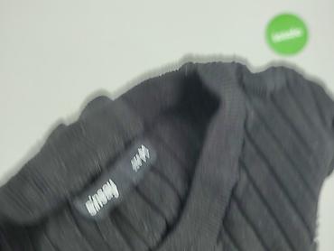 Czarny sweter damski ebelieve, rozmiar S/M. - Fason: krótki/cropped, dopasowany, z okrągłym dekoltem i długim rękawem. - Dzianina z reliefowym, geometrycznym wzorem na całej powierzchni. - Ściąg...