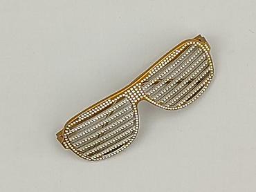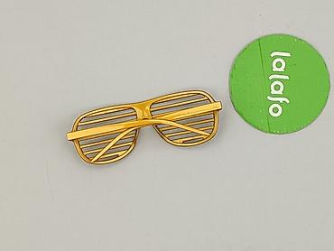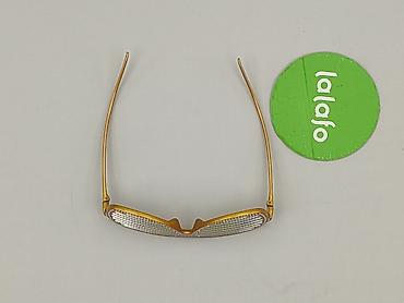 Model bez tradycyjnych soczewek – przeznaczony jako akcesorium modowe/dekoracyjne. Kolor: złoty z połyskiem i transparentnymi kryształkami. Dla kobiet. Używane.