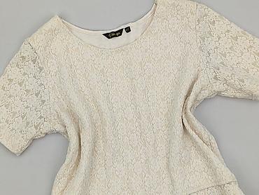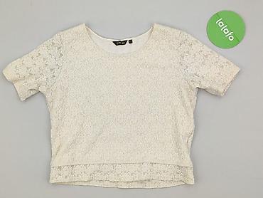 Bluzka damska F.Moda, rozmiar S/M. - Kolor: ecru/śmietankowy. - Fason: dopasowany, dekolt łódka, rękaw 3/4. - Ozdoby: koronka i drobne perełki na ramionach i górnej części rękawów. - Materiał: ...