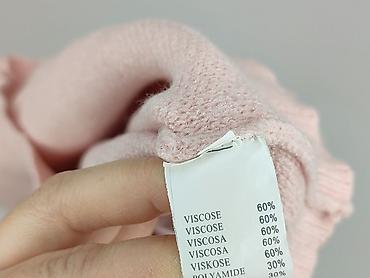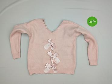 Delikatna, miękka dzianina o gładkim splocie, idealna do stylizacji casual i smart-casual. Subtelny kolor i dekoracyjne kokardy dodają kobiecego charakteru. Dla osoby dorosłej (kobieta). Używany.