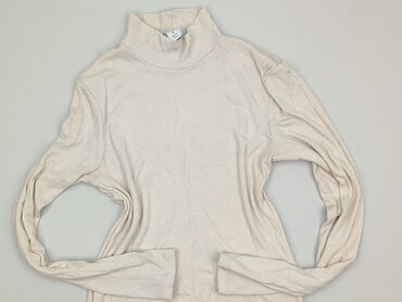 Golf damski Mohito Collection, rozmiar S. - Kolor: beżowy - Wzór: delikatne, poziome paseczki z połyskującą nitką - Fason: dopasowany, z długim rękawem - Kołnierz: wysoka stójka/golf - Materiał: e...