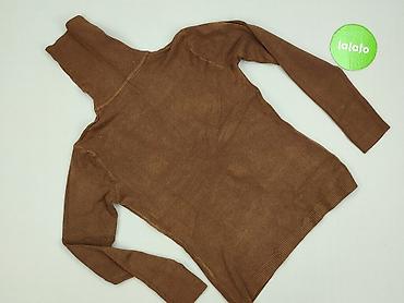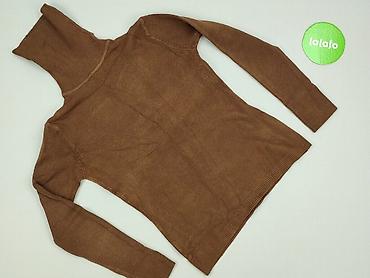 Damski golf prążkowany, kolor ciepły brąz/kakao. - Fason: dopasowany, elastyczny, długi rękaw, wysoki kołnierz typu turtleneck. - Rozmiar z metki: M. - Skład materiału: 51,4% wiskoza, 26,8% poli...