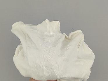 Golf damski, biały/kremowy, z długim rękawem. - Fason: klasyczny golf z szeroką, prążkowaną stójką - Materiał: cienka, dzianinowa przędza o gładkim splocie; prążkowane wykończenia ściągaczy przy s...