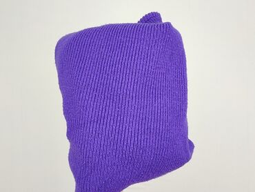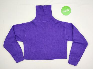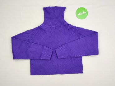 Fioletowy sweter damski z golfem - Fason: bluzka/sweter z krótkim rękawem - Dekolt: wysoki golf - Rękawy: krótkie, zakończone szerokim, prążkowanym ściągaczem - Dół: szeroki ściągacz z dekoracyjny...Stan: