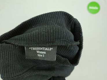 Czarny golf prążkowany – rozmiar S - Fason: dopasowany sweter z wysokim, miękkim golfem - Dzianina: grubsza, elastyczna, wyraźny pionowy prążek na całej powierzchni - Rękawy: długie - Dół i mankie...