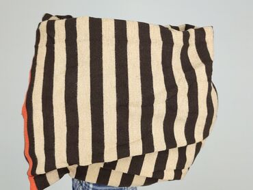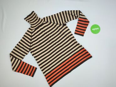 - Wzór: poziome pasy; główne kolory beż i ciemny brąz, z akcentami w intensywnym pomarańczu na mankietach i dole