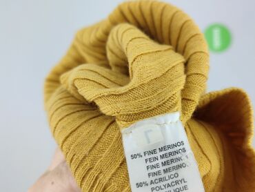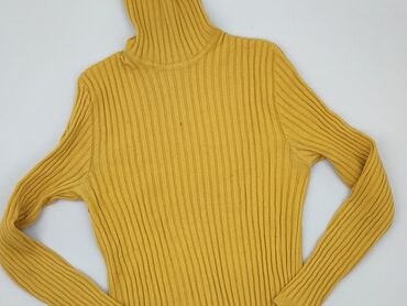 Golf prążkowany w kolorze musztardowo‑żółtym - Fason: dopasowany, elastyczny, długie rękawy - Kołnierz: wysoki golf do podwinięcia - Dzianina: średniej grubości, sprężysta, w pionowe prążki (rib) ...Stan: