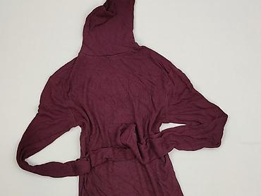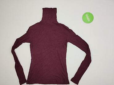Sweter damski – prążkowany golf/tuba, kolor bordowy - Fason: dopasowany, wydłużony (tunika), długi rękaw - Kołnierz: półgolf/golf z wycięciem w kształcie trójkąta przy dekolcie - Dzianina: elastyc...