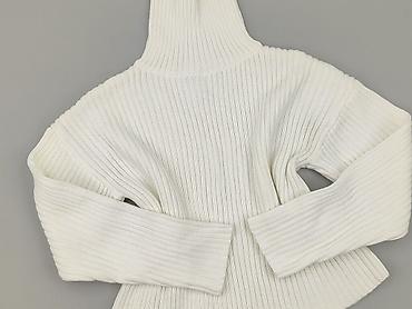 Biały sweter golf SHEIN – rozmiar S (EU 36, US 4) - Fason: klasyczny golf z raglanowymi rękawami - Splot: korpus gęsty, prążkowany; rękawy ażurowe w romby - Wykończenie: szeroki, elastyczny golf o...