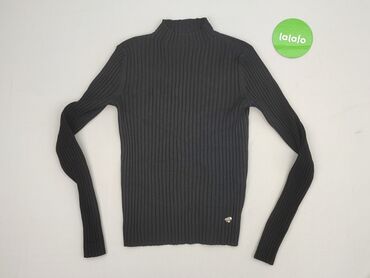 Czarny golf prążkowany – rozmiar S - Fason: dopasowany sweter z wysokim, miękkim golfem - Dzianina: grubsza, elastyczna, wyraźny pionowy prążek na całej powierzchni - Rękawy: długie - Dół i mankie...