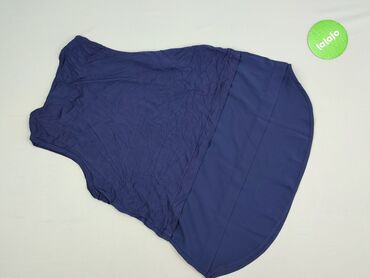 Granatowa bluzka damska bez rękawów, idealna na ciepłe dni. Charakteryzuje się dekoltem w kształcie litery V, który jest zapinany na trzy ozdobne guziki w kolorze złotym lub mosiężnym. Prosty krój ...Stan: