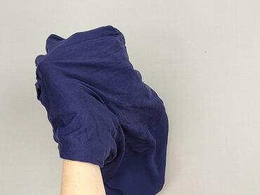 Bluzka damska w kolorze chabrowym z rękawami o długości 3/4. Rękawy, wykonane z perforowanego materiału, charakteryzują się delikatnym marszczeniem przy ramionach i na zakończeniach, co nadaje im e...