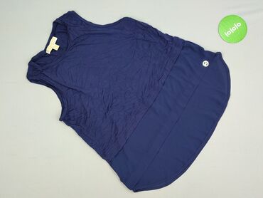 Bez rękawówGranatowa bluzka damska bez rękawów marki Michael Kors. Bluzka charakteryzuje się okrągłym dekoltem i jest wykonana z lekkiego, komfortowego materiału, idealnego na ciepłe dni. Dół bluzki jest zaokrąglony i ma wydłużony tył, co nadaje jej swobodny, a jednocześnie elegancki wygląd. Z przodu, na dole, znajduje się subtelne, metalowe logo marki, dodające produktowi ekskluzywnego charakteru. Idealna do noszenia na co dzień, jak i na bardziej formalne okazje.