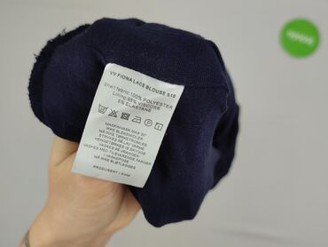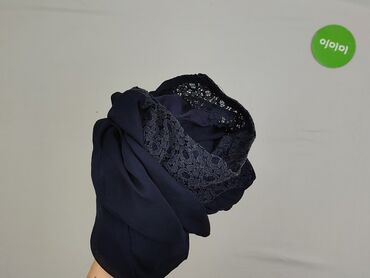 Bluzka damska w kolorze granatowym, rozmiar XL. - Krój: luźny, z okrągłym dekoltem; subtelne zakładki z przodu. - Rękawy: krótkie, wykonane z ażurowej koronki o kwiatowym wzorze. - Materiał: lekki...
